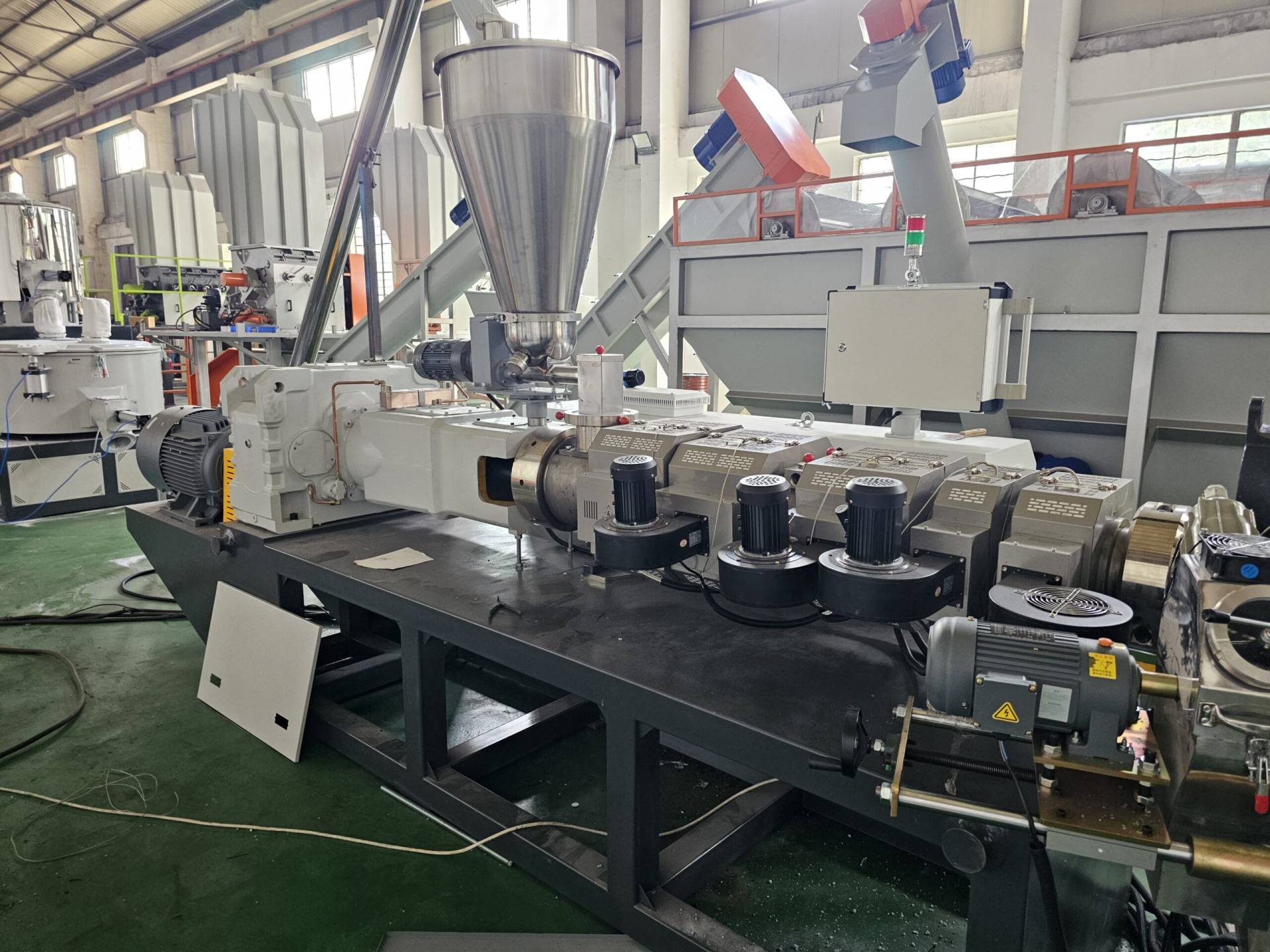 - Equipped with side feeders, vacuum venting, and continuous melt filtration